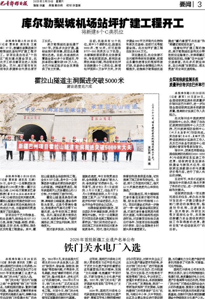 本报库尔勒3月28日讯 (记者 原小鹏 通讯员 王骞) 记者从国网巴州供电公司获悉:26日,自治区工业和信息化厅公布2025年首批新疆工业遗产名单,铁门关水电厂成功入选。