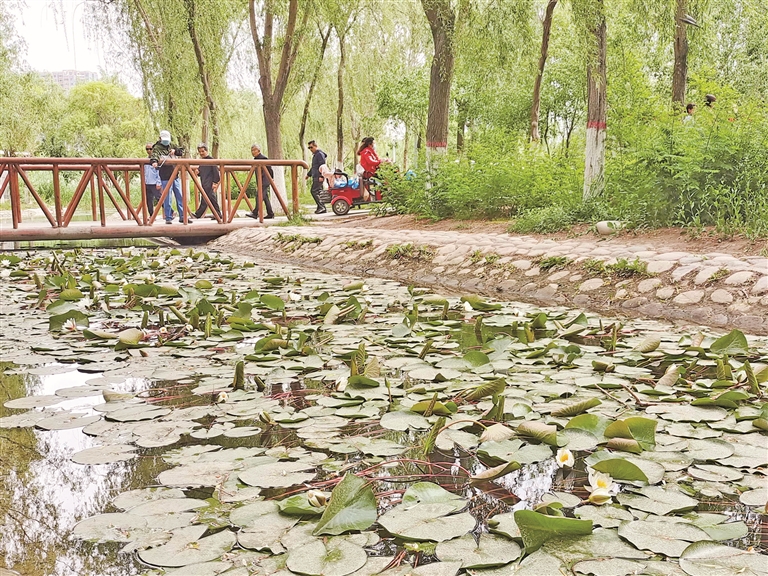 紫色睡莲神秘深邃,白色睡莲素雅高洁,粉色睡莲清新活泼,它们在水中争奇斗艳,成为城市里一道亮丽的风景线。本报记者 薛兵 摄