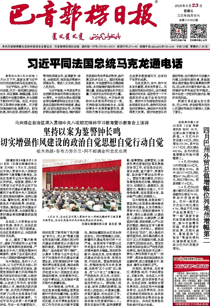 - 坚持以案为鉴警钟长鸣 切实增强作风建设的政治自觉思想自觉行动自觉 《新疆日报》乌鲁木齐5月21日讯 (石榴云/新疆日报记者 王兴瑞) 5月21日,自治区召开深入贯彻中央八项规定精神学习教育警示教育会,自治区党委书记马兴瑞出席会议并讲话。他强调,要深入学习贯彻习近
