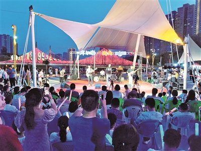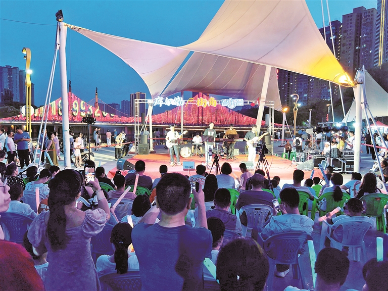 当晚的演唱亮点纷呈,回声乐队接连献上《春风十里》《男孩》《那就这样吧》等多首耳熟能详的流行歌曲,时而深情婉转,时而热烈奔放,不断点燃现场气氛,引得台下观众跟着节奏轻声和唱,让广场的夏夜充满激情和动感。