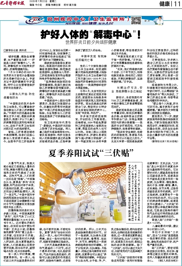 □新华社记者 顾天成 储存能量、清除血液毒素、生产重要蛋白质……肝脏是人体的“解毒中心”。然而,病毒性肝炎可能带来肝硬化、肝癌等健康风险。 7月19日举办的2025年世界肝炎日宣传