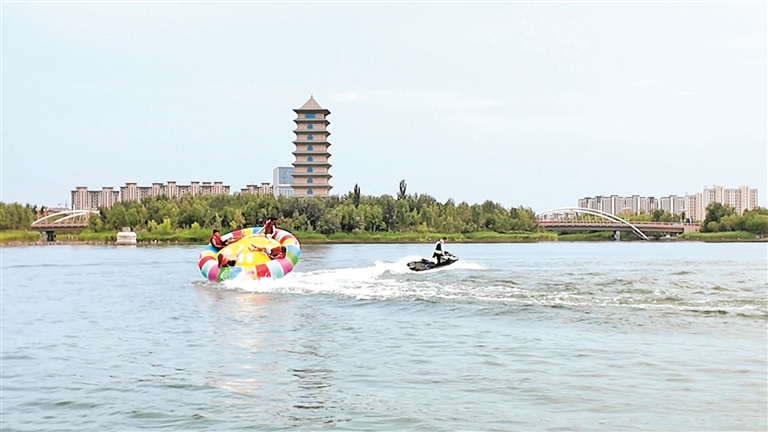 “白天玩是刺激,晚上玩是浪漫。吹着河风看夜景,感觉鸿雁河的夜晚活起来了。”游客李杰说。