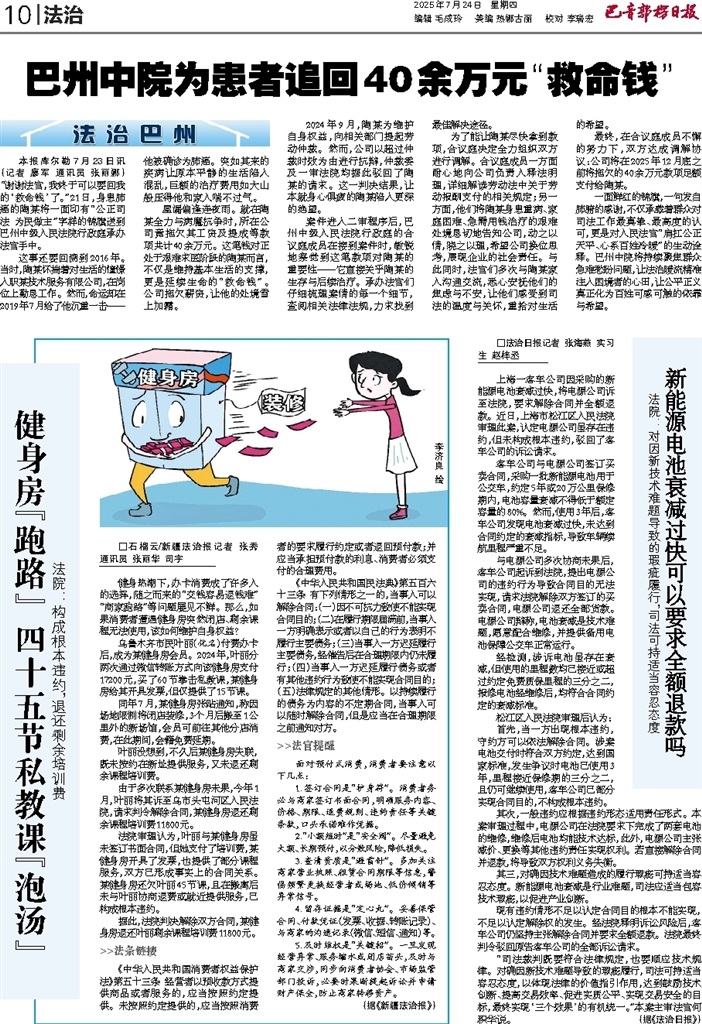 - 巴州中院为患者追回40余万元“救命钱” 本报库尔勒7月23日讯 (记者 廖军 通讯员 张丽娜) “谢谢法官,我终于可以要回我的‘救命钱’了。”21日,身患肺癌的陶某将一面印有“公正司法 为民做主”字样的锦旗送到巴州中级人民法院行政庭承