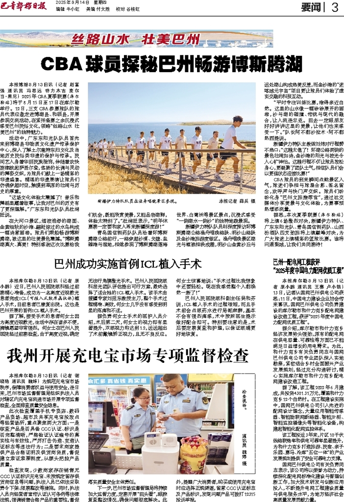 - CBA球员探秘巴州畅游博斯腾湖 本报博湖8月13日讯 (记者 赵富强 通讯员 冯思远 特力木吉 麦尔当·黑尼) 2025年CBA夏季联赛(库尔勒站)将于8月15日至17日在库尔勒举行。12日,三支CBA参赛球队的球员代表应邀走进