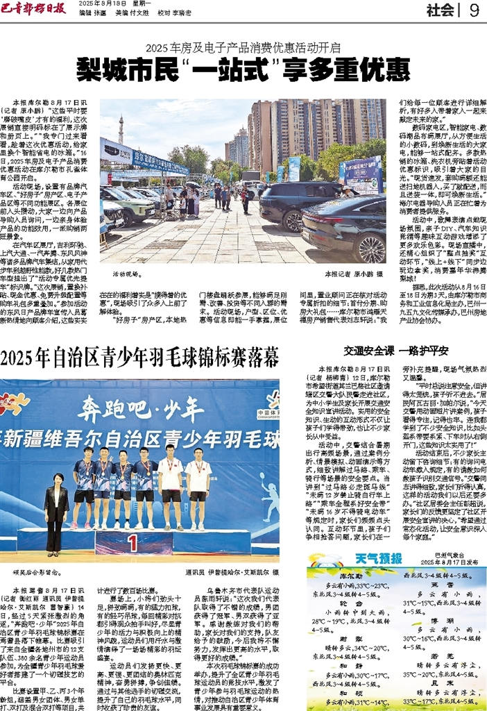 本报焉耆8月17日讯 (记者 衡红丽 通讯员 伊普提哈尔·艾斯凯尔 曹智豪) 14日,经过5天紧张激烈的角逐,“奔跑吧·少年”2025年自治区青少年羽毛球锦标赛在焉耆县落下帷幕。比赛吸引了来自全疆各地州市的12支队伍、380余名青少年运动员参加,为全疆青少年羽毛球爱好者搭建了一个切磋技艺的平台。