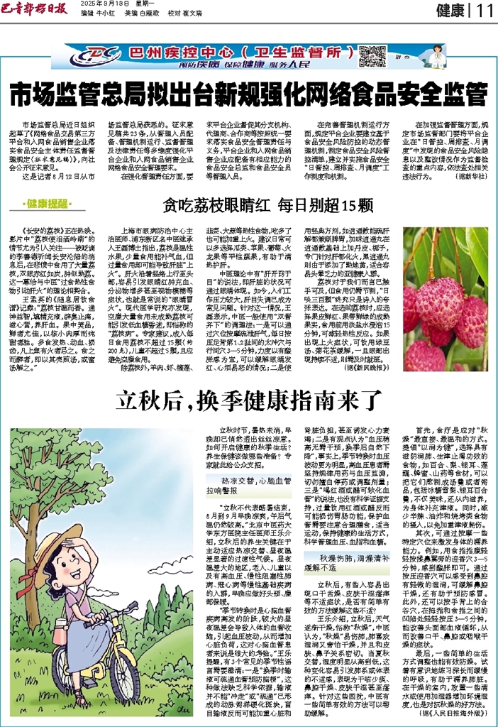 - 立秋后,换季健康指南来了 立秋时节,暑热未消,早晚却已悄然透出丝丝凉意。如何开启健康的秋季生活?养生保健该做哪些准备?专家就此给公众支招。 热凉交替,心脑血管拉响警报 “立秋不代表酷暑结束,8月到9月早晚凉爽,午后