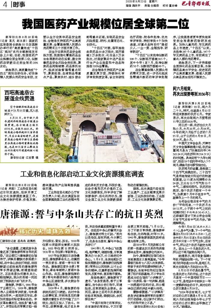 - 我国医药产业规模位居全球第二位 新华社北京8月22日电(记者 高亢 赵文君) 国家药监局副局长杨胜22日在国新办举行的“高质量完成‘十四五’规划”系列主题新闻发布会上介绍,目前,我国医药产业规模位居全球第二位,创新药在研数目达到