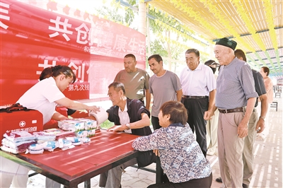 8月19日,和硕县卫健委联合残联、退役军人事务局等单位,以“预防伤害致残,共创健康生活”为主题,开展全国残疾预防日系列扶残助残活动,通过科普宣教、健康服务、走访慰问等方式,强化残疾预防意识,传递社会关爱。图为和硕县医共体总医院特吾里克镇中心卫生院医生为群众测血压。文/通讯员 刘凌云 图/通讯员 曹彦子