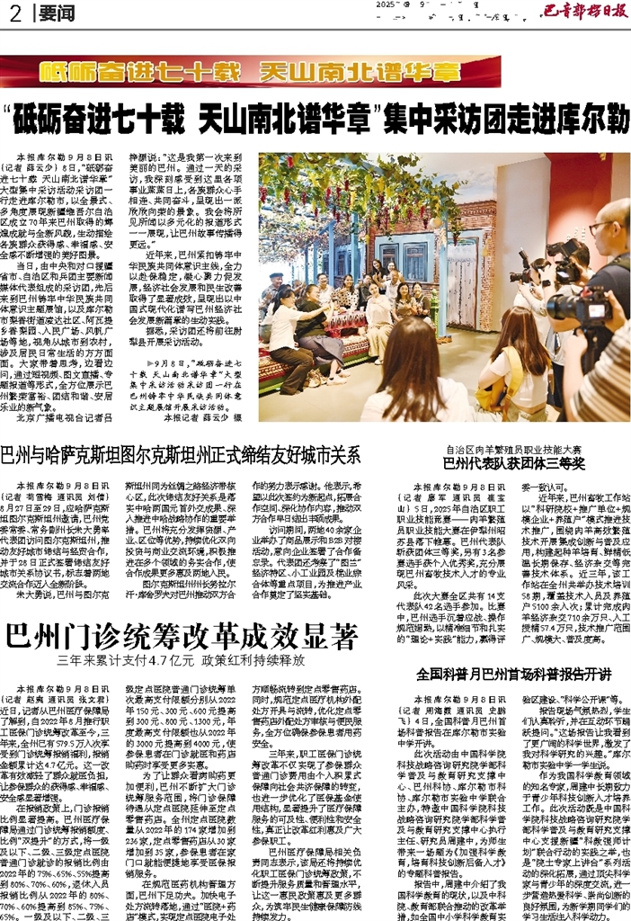 - 巴州门诊统筹改革成效显著 本报库尔勒9月8日讯 (记者 赵爽 通讯员 张文君) 近日,记者从巴州医疗保障局了解到,自2022年8月推行职工医保门诊统筹改革至今,三年来,全州已有579.5万人次享受到门诊统筹报销福利,报销金