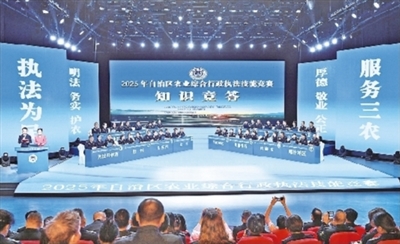 本报库尔勒9月17日讯(记者 薛云少) 16日,2025年自治区农业综合行政执法技能竞赛知识竞答在巴音郭楞融媒体中心举行,旨在通过“以赛促学、以赛促干、以赛促效”方式,进一步提升农业综合执法人员业务能力和专业水平,锻造一支政治坚定、业务精通、作风优良、执法公正的农业执法铁军,为推进全疆农业农村现代化保驾护航。