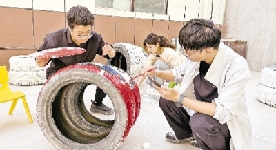 活动当天,志愿者们分工协作,清洗轮胎、打磨表面、勾线涂色……大家手持画笔,全神投入,在轮胎上进行创作。经过几个小时的集体创作,原本被废弃的轮胎焕然一新,变身成一幅幅承载童趣与美好的艺术画作——憨态可掬的大熊猫、向阳而开的向日葵、生动有趣的卡通角色纷纷“跃”上胎面,引得居民连连称赞。