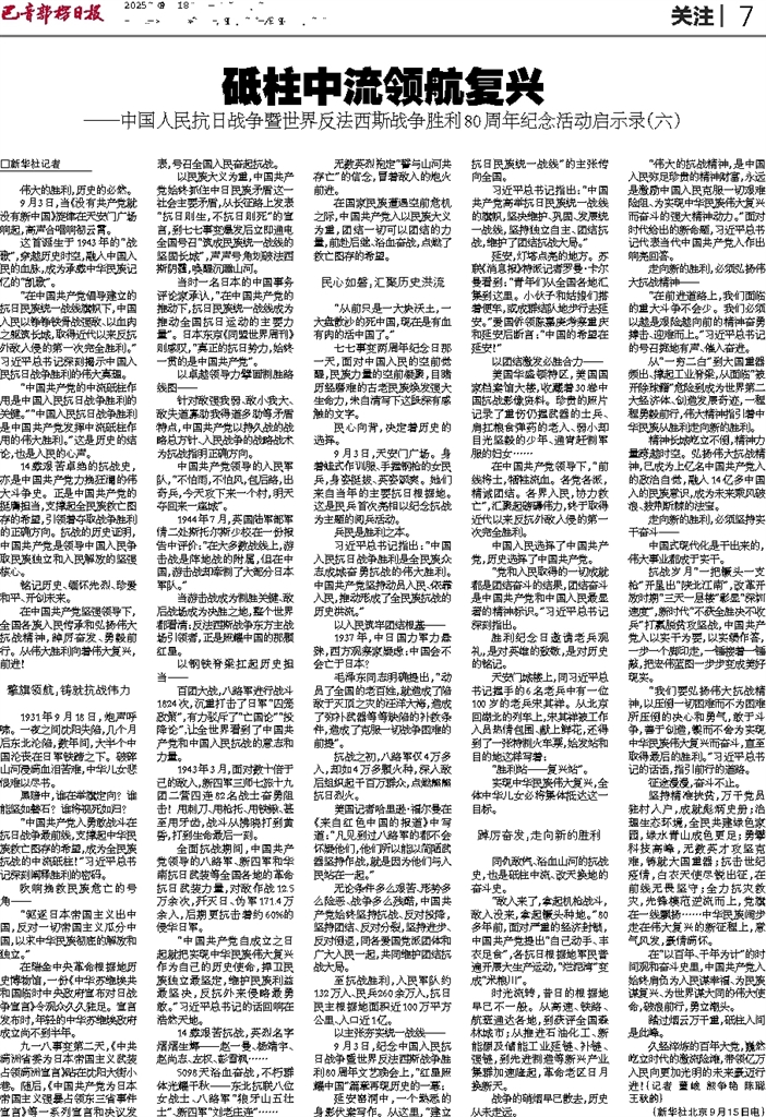 □新华社记者 伟大的胜利,历史的必然。 9月3日,当《没有共产党就没有新中国》旋律在天安门广场响起,高声合唱响彻云霄。 这首诞生于1943年的“战歌”,穿越历史时空,融入中国人