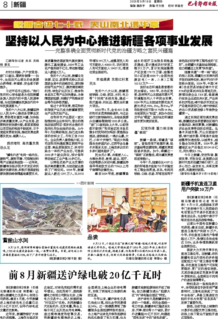 - 前8月新疆送沪绿电破20亿千瓦时 据《新疆日报》消息 (石榴云/新疆日报记者 陈蔷薇) 记者从新疆电力交易中心有限公司获悉:截至8月底,今年新疆送上海的绿色电力总量已达21.8亿千瓦时,创年内绿电成交量历史新高。 近年来,新疆