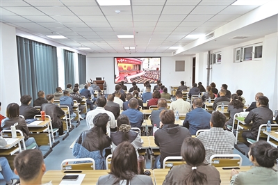 在库尔勒市住房和城乡建设局的会议室内,干部职工为直播中展现的城乡巨变深感自豪。当画面展示新疆70年来在城乡面貌、基础设施、人居环境等方面实现的跨越式发展时,现场多次响起热烈掌声。
