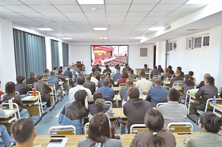 在巴州蒙医医院,全体干部职工集中收看了大会直播。外科主任姚永全表示:“我们要把这份鼓舞转化为动力,深耕蒙医药传承创新,优化诊疗服务,更好地守护各族群众健康,为巴州医疗事业发展添砖加瓦。”
