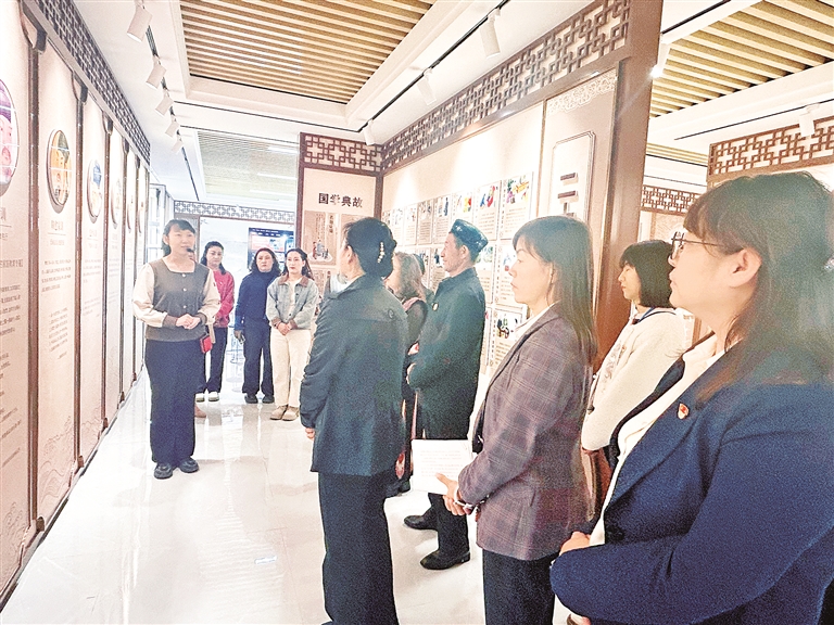 活动中,妇女代表们在“石榴花”讲解员的引导下,参观了社会主义核心价值观、中国历史记忆、丝绸之路、家风家训、二十四孝等主题展区。在参观过程中,大家沿着历史脉络,通过翔实的展陈内容,深切感受中华文明的源远流长和博大精深,进一步铸牢中华民族共同体意识。