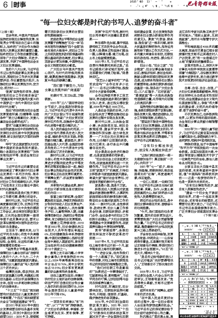 “每一位妇女都是时代的书写人、追梦的奋斗者”