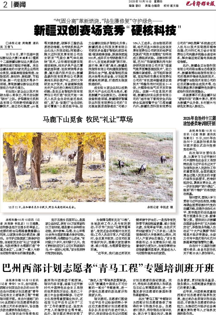- 巴州西部计划志愿者“青马工程”专题培训班开班 本报库尔勒10月15日讯 (记者 李伶) 14日,由州团委、西部计划项目办主办的2025年自治州西部计划志愿者“青年马克思主义者培养工程”专题培训班开班。来自州直部门的190名西部计划志愿者将参加