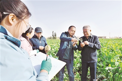 当日,在库尔勒市“农业农村部作物栽培现代农业科技试验示范基地”,绿油油的甜菜长势正旺。专家深入田间,撸起袖子,分工协作,严格按照现场勘验方案展开系统评估。