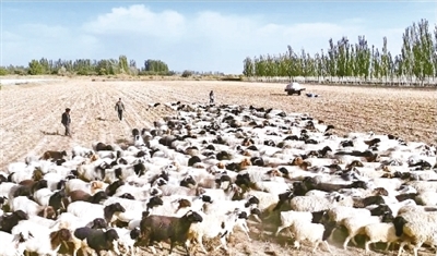 据统计,今年,轮台县已有15万头(只)牲畜进入农田秸秆地,时间从10月中下旬持续至次年3月。