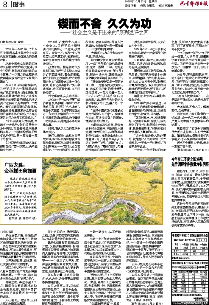 - 锲而不舍 久久为功 □新华社记者 黄玥 2026年—2030年,“十五五”时期是基本实现社会主义现代化夯实基础、全面发力的关键时期。 从新中国成立初期的百废待兴到新时代的伟大变革,14个“五年”串联起