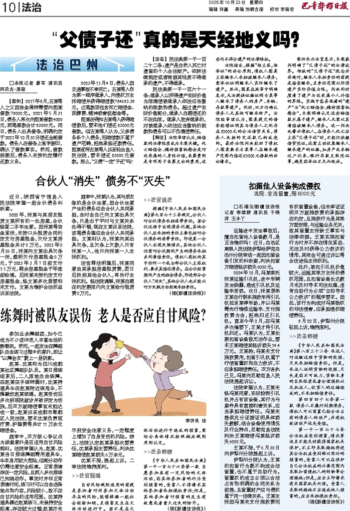 - “父债子还”真的是天经地义吗? □本报记者 廖军 通讯员 阿孜古·亚森 【案例】 2017年8月,古某等人之父因资金周转需要向图某借款79000元。2021年5月31日,债务人再次向图某借款4000元,两笔借款合计83