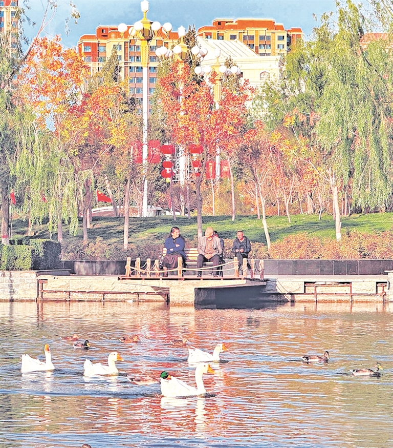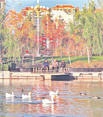 10月20日,市民在乌鲁木齐天山公园观赏水鸟,乐享美好时光。□石榴云/新疆日报记者 约提克尔·尼加提 摄
