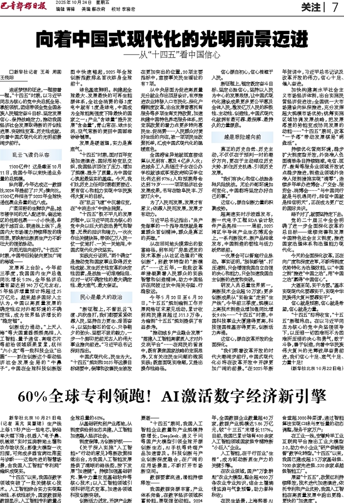 新华社北京10月21日电(记者 高亢 吴慧珺) 生产线上每1.7秒产出一组电芯,缺陷率大幅下降;机器人“电子鼻、机械眼”实时监测耕地土壤和农作物状况;影像大模型一次扫描,可完成多器官病灶筛查与诊断