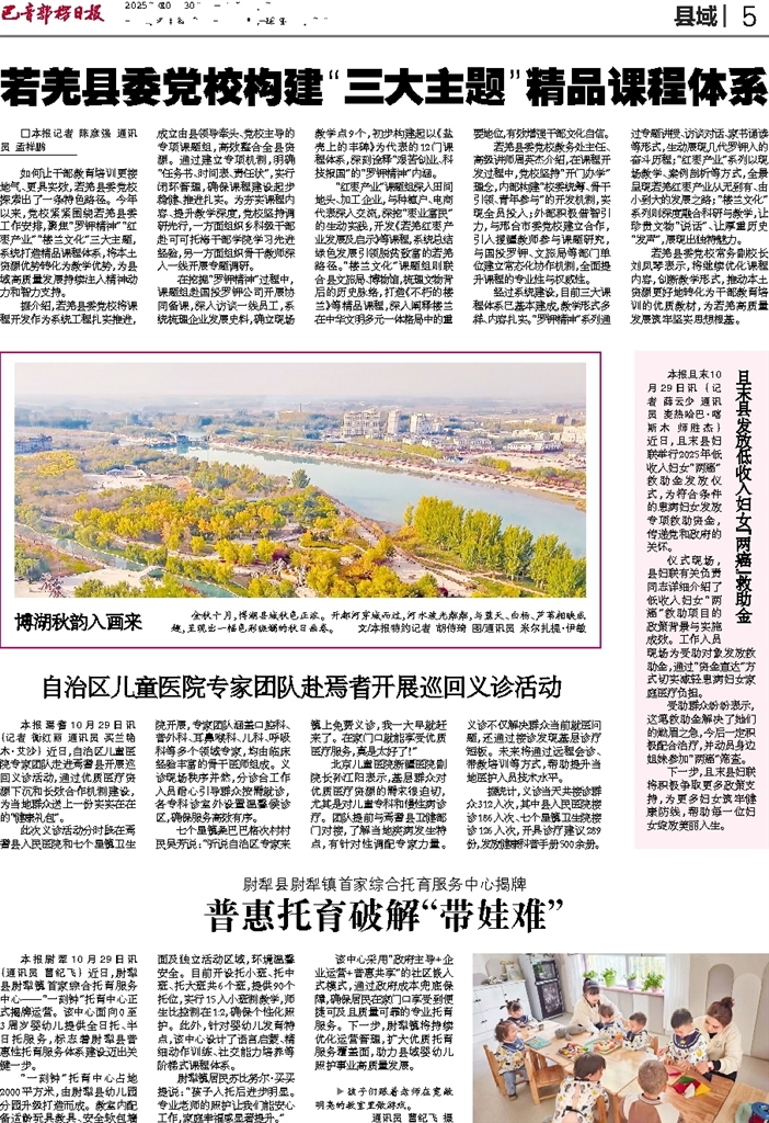 - 自治区儿童医院专家团队赴焉耆开展巡回义诊活动 本报焉耆10月29日讯 (记者 衡红丽 通讯员 买兰艳木·艾沙) 近日,自治区儿童医院专家团队走进焉耆县开展巡回义诊活动,通过优质医疗资源下沉和长效合作机制建设,为当地群众送上一份实实在在的“健康