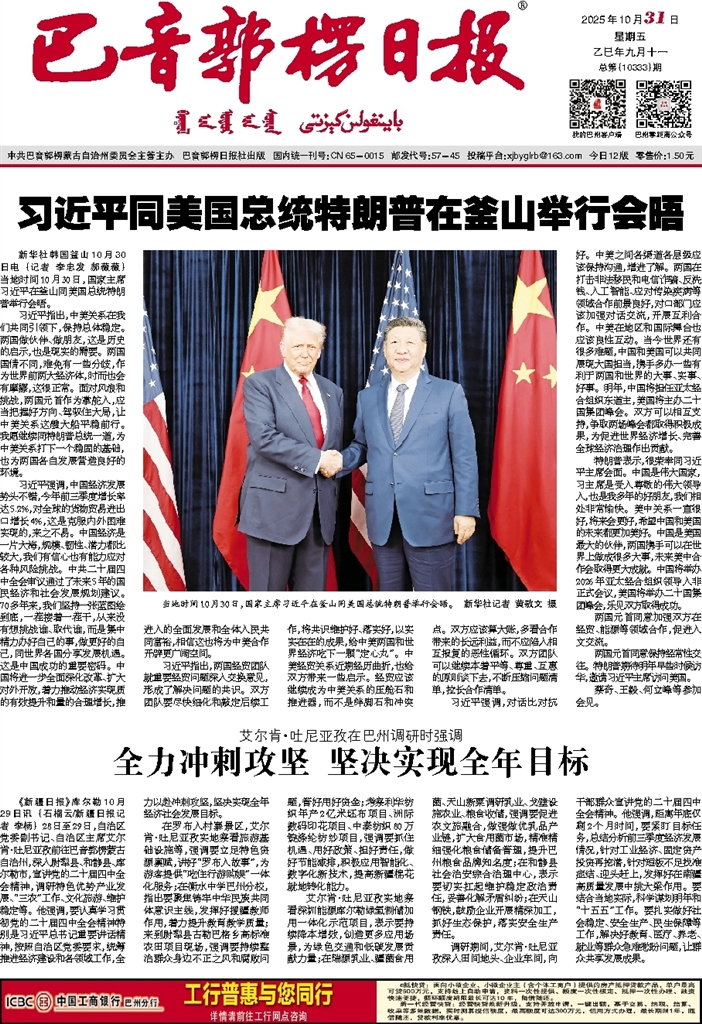 《新疆日报》库尔勒10月29日讯 (石榴云/新疆日报记者 李杨) 28日至29日,自治区党委副书记、自治区主席艾尔肯·吐尼亚孜前往巴音郭楞蒙古自治州,深入尉犁县、和静县、库尔勒市,宣讲党的二十届四