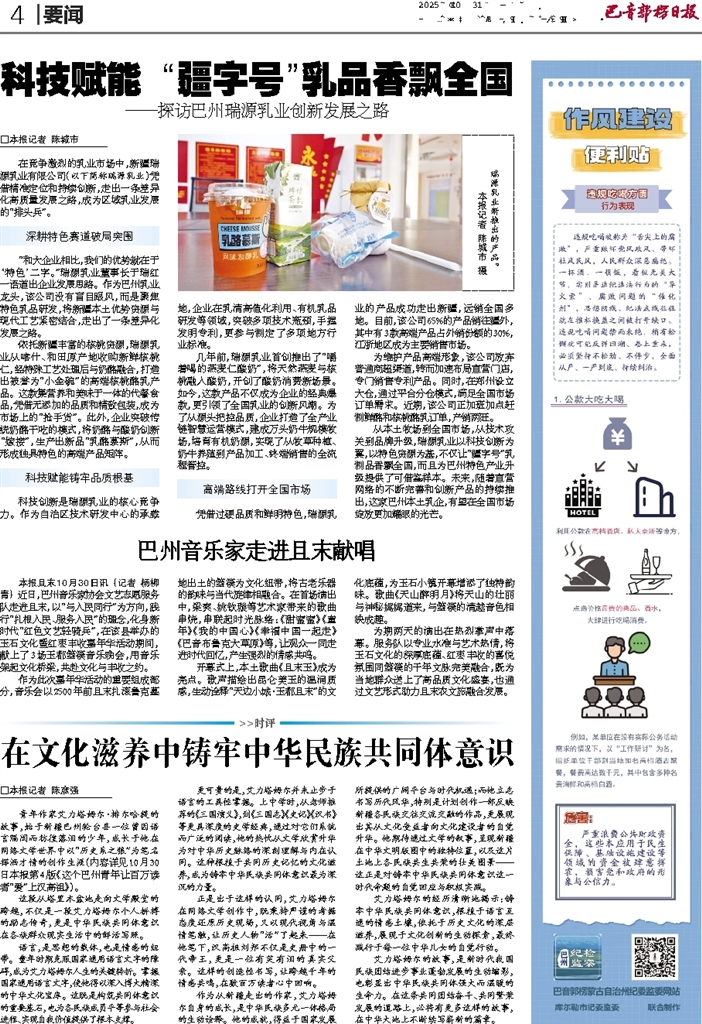 - 科技赋能 “疆字号”乳品香飘全国 □本报记者 陈城市 在竞争激烈的乳业市场中,新疆瑞源乳业有限公司(以下简称瑞源乳业)凭借精准定位和持续创新,走出一条差异化高质量发展之路,成为区域乳业发展的“排头兵”。 深耕特色赛