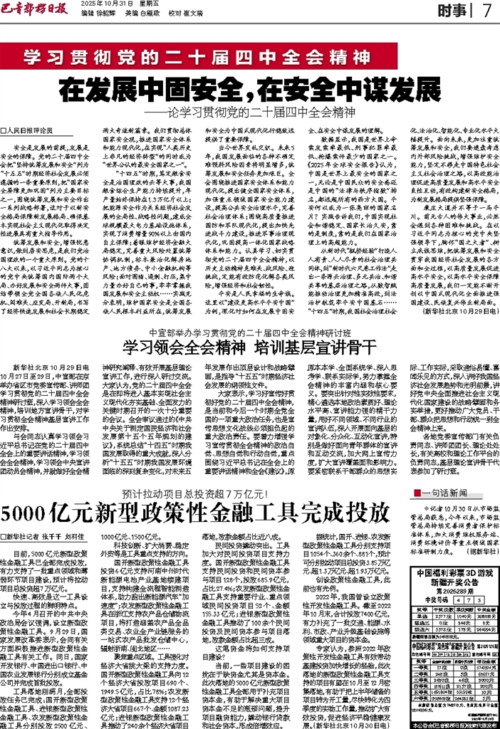 - 在发展中固安全,在安全中谋发展 □人民日报评论员 安全是发展的前提,发展是安全的保障。党的二十届四中全会把“坚持统筹发展和安全”列为“十五五”时期经济社会发展必须遵循的一条重要原则,把“国家安全屏障更加巩固”列为主要