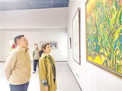 通过讲解员讲解,大家了解了每一幅画作背后的巴州本土故事,了解了巴州的“人文密码”—— 手工艺品里非遗代表性传承人的巧思,风景画里家乡的四季流转,每一件作品都是 “巴州印记”的生动注解。