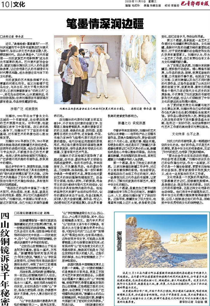 尽管多年来定居深圳,刘雁冰的艺术创作从未停歇——他年均产出上百幅书画作品,若遇大型题材创作,更会倾注两到三个月的心血,逐笔打磨、精益求精。即便身处南方,他还是忘不了新疆这片承载着他青春记忆与艺术养分的土地,新疆始终是他心中难以割舍的牵挂。此次他重回新疆,开启短暂的旅居生活,其背后藏着三个深藏多年的人生夙愿。