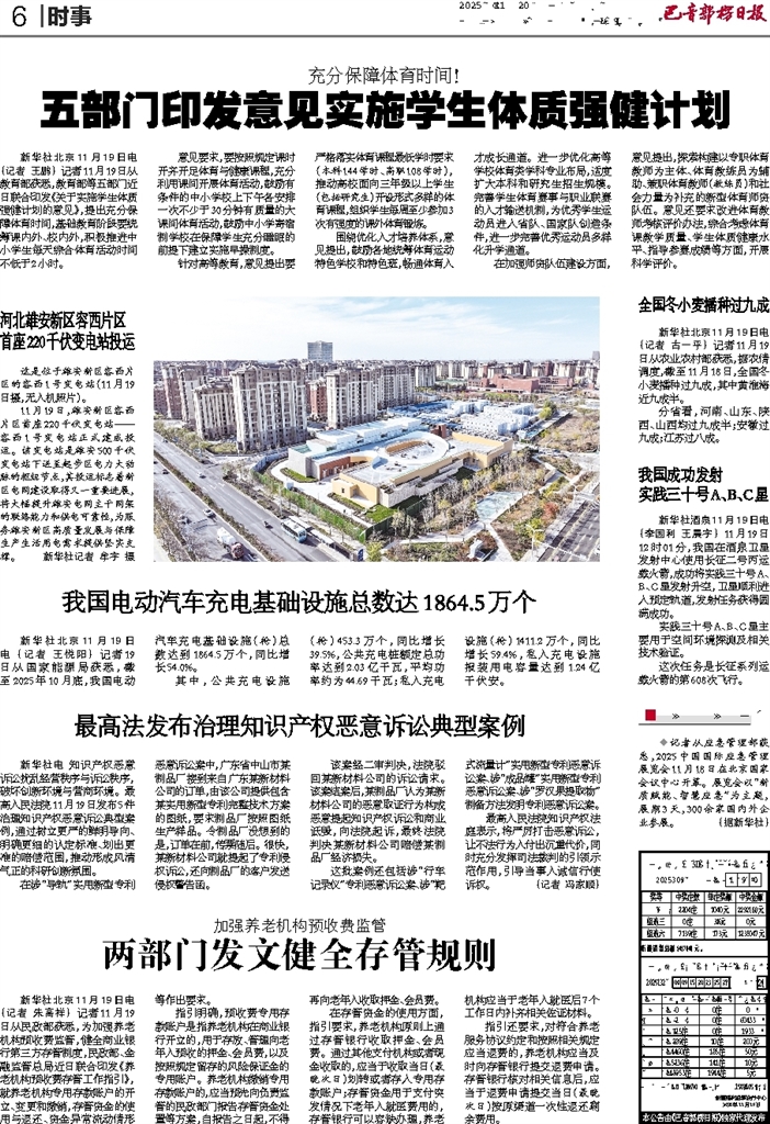 - 两部门发文健全存管规则 新华社北京11月19日电(记者 朱高祥) 记者11月19日从民政部获悉,为加强养老机构预收费监管,健全商业银行第三方存管制度,民政部、金融监管总局近日联合印发《养老机构预收费存管工作指引》,就养老