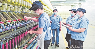 11月18日,参赛选手在新疆裕鑫源纺织有限公司车间进行技能比武。当天,沙湾市总工会联合该公司举办纺织技能比武大赛,旨在通过以赛促学、以赛促练,着力培养高素质技能人才。