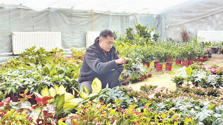5年的时间里,马国鸣的大棚像吹了气似的不断“长大”,从300平方米扩展到2200平方米,花卉品种也从最初的十几种增加到百余样。销售渠道更是从母亲的小店,拓展到周边多个县市的花店和农贸市场。每逢节日,批发订单络绎不绝。他的角色也从单纯的种植户,慢慢变成了帮助乡亲们增收的带头人。