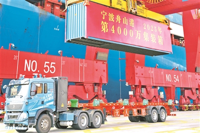 12月2日,宁波舟山港2025年集装箱吞吐量突破4000万标准箱。宁波舟山港近年来发展不断提速,货物吞吐量已连续16年蝉联全球第一,在共建“一带一路”、长江经济带发展、长三角一体化发展等国家战略中发挥出重要作用。