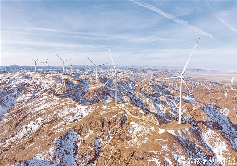 12月1日,木垒哈萨克自治县大石头风场上的风力发电机组迎风“起舞”。近年来,木垒大力推进新能源产业发展,已建成县级千万千瓦级新能源基地。今年,该县实施新能源项目19个,年底前新增并网1000万千瓦,将建成全疆首个县级“双千万千瓦级”新能源基地。据《新疆日报》(何龙 摄)