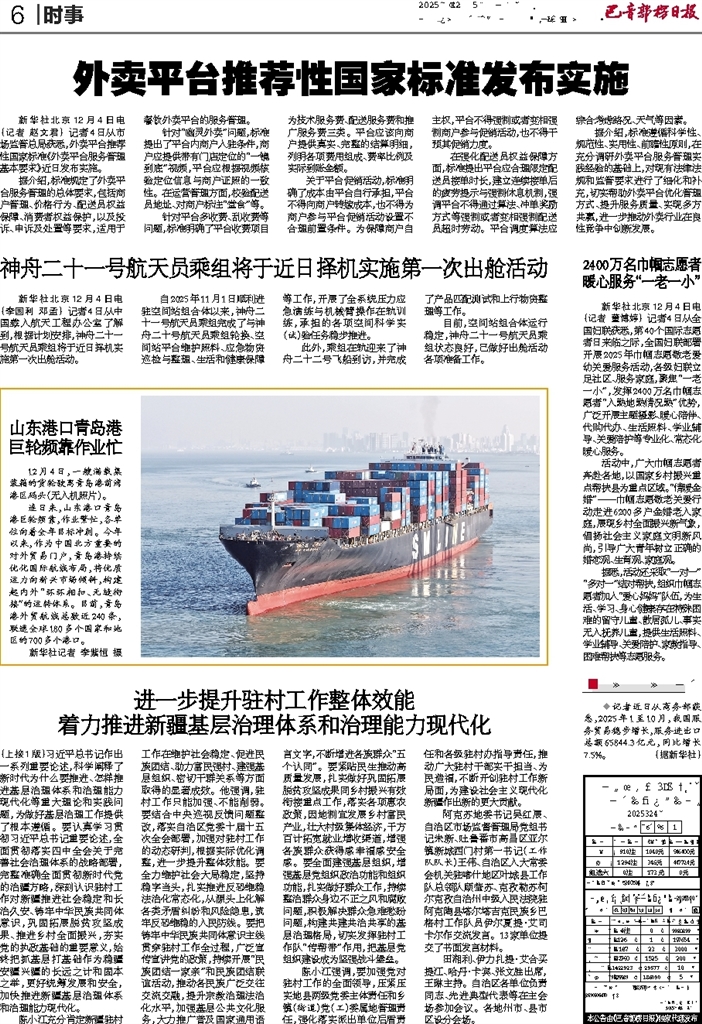 - 进一步提升驻村工作整体效能 着力推进新疆基层治理体系和治理能力现代化 (上接1版)习近平总书记作出一系列重要论述,科学阐释了新时代为什么要推进、怎样推进基层治理体系和治理能力现代化等重大理论和实践问题,为做好基层治理工作提供了根本遵循。要认真学习贯彻习近平总书记重要