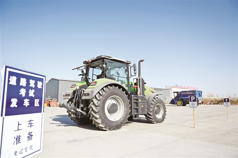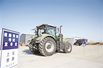 近日,巴州首个电子化农机驾考中心在库尔勒投入使用。该驾考中心启用电子桩考系统,搭载先进的北斗导航系统,可实时监测拖拉机、联合收割机等主流农机行驶轨迹、桩位间距、转向时机等关键操作。考试全程无需人工干预,系统自动识别车身压线、碰杆、移库超时等违规行为,当场生成考试成绩单,考生签字确认后即可知晓成绩。电子桩考系统启用后,不仅提高了农机驾驶证的“含金量”,也将推动农机驾驶培训向规范化、精准化方向发展。图为学员在参加考试。