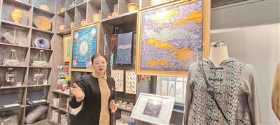 7日,记者走进陶·楼兰文创馆,这里除了乌尉高速公路纪念单品“锦绣丝路”丝巾外,还有近千件文创单品,涵盖两大核心系列,这让厚重历史变得鲜活可感。其中,博物馆文物纹样系列最为吸睛,国家一级文物“五星出东方利中国”锦护臂的经典纹样,被巧妙用于手提包、发卡、冰箱贴等实用好物上,古代的五色经锦工艺与当代生活场景完美融合;另一系列则以被列入国家级非物质文化遗产名录的艾德莱斯绸为核心元素,将其绚丽的传统纹样融入服饰、配饰设计,尽显新疆人民对自然与生活的热爱。从发绳、手机挂绳,到真丝丝巾、冰箱贴、手提包,丰富的产品形态,让每位游客都能找到心仪的文创产品。