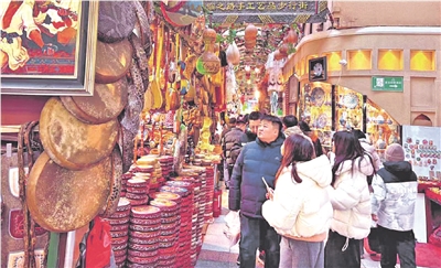 1月8日,游客在新疆国际大巴扎手工艺品特色街区游览。冬日的大巴扎人流如织,来自各地的游客在此沉浸式感受着新疆热情多元、和谐共生的文化脉搏。 石榴云/新疆日报记者 约提克尔·尼加提 摄