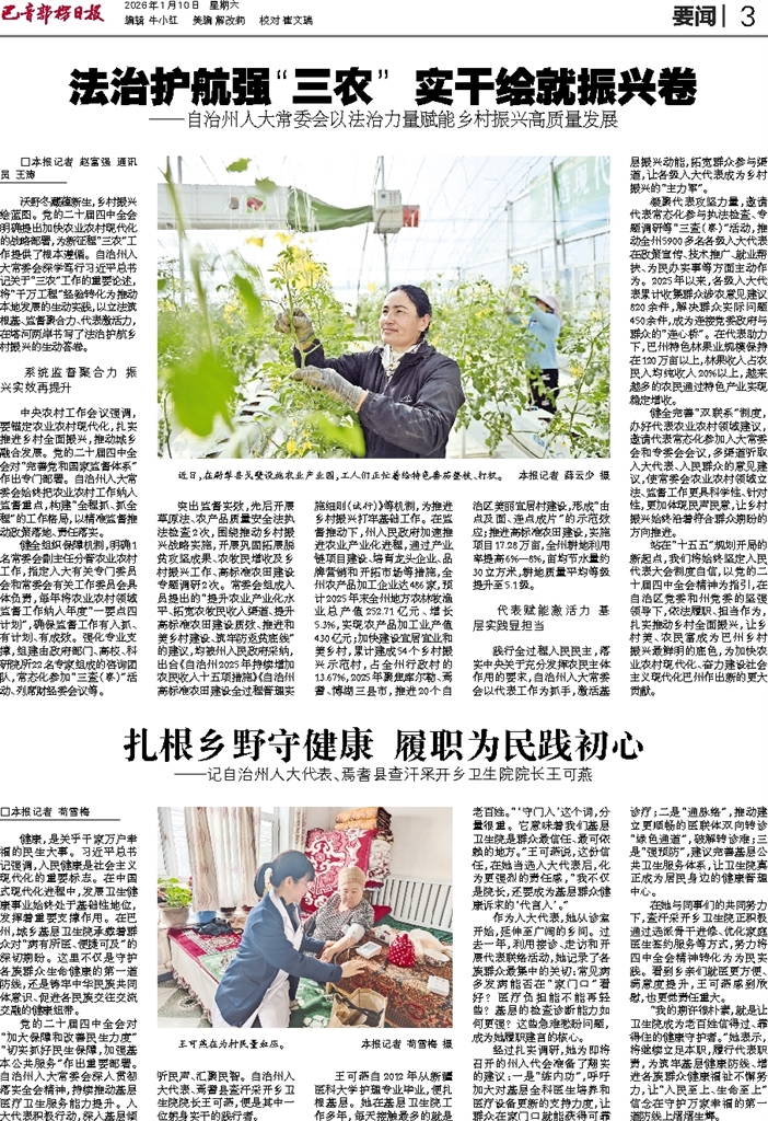 □本报记者 赵富强 通讯员 王涛 沃野冬藏蕴新生,乡村振兴绘蓝图。党的二十届四中全会明确提出加快农业农村现代化的战略部署,为新征程“三农”工作提供了根本遵循。自治州人大常委会深学笃行习