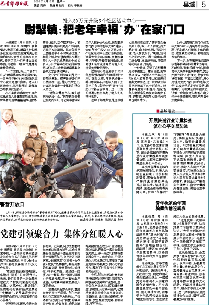 - 尉犁镇:把老年幸福“办”在家门口 本报尉犁1月11日讯 (记者 李伶 通讯员 倪海霞) 新春渐近,寒意不减,尉犁县尉犁镇各社区活动室里暖意融融,铿锵的鼓点、欢快的旋律相互交织,奏响了老人们幸福生活的序曲,勾勒出一幅热气腾腾的桑榆乐