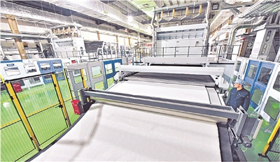 1月13日,工人在新疆中泰亨惠医疗卫材股份有限公司水刺无纺布生产车间作业。近日,年产45万吨莱赛尔纤维项目落地库尔勒经济技术开发区,不仅填补了新疆高端环保纤维生产空白,也为巴音郭楞蒙古自治州打造绿色纺织产业高地注入强劲动力。