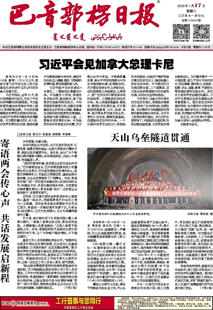 - 天山乌垒隧道贯通 本报轮台1月16日讯 (记者 景丽君 通讯员 王娟) 16日10时50分,随着最后一声爆破,天山乌垒隧道顺利贯通,成为新疆贯通里程最长的二级公路隧道。 S340线策大雅—霍尔古吐—红旗牧场岔口