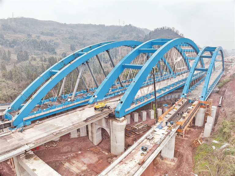 1月22日,由中铁四局承建的西渝高铁跨营达高速公路大桥右联平稳落在桥墩上,标志全国首座高铁大跨度网状吊杆系杆拱桥全桥顶推完工,为全线按期通车奠定了坚实基础。