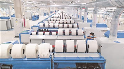 1月18日,工人在位于呼图壁县工业园区的新疆宇华纺织科技有限公司生产车间作业。作为自治区级农业产业化龙头企业及北疆地区规模最大的气流纺纯棉纱生产基地,该公司通过生产线智能化改造后,其产品附加值提高5%,预计今年可实现产值6亿元。 据《新疆日报》 (马光元 摄)