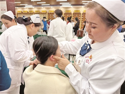 “身心共养·中医适宜技术体验区”也是膏方节的一大亮点。火龙罐、耳穴压豆等中医适宜技术体验项目前,市民们排起了长队。体验完火龙罐的张先生笑着说:“中医技术真是神奇,做完火龙罐,肩颈舒服了,感觉浑身轻松,气血更加顺畅了。”